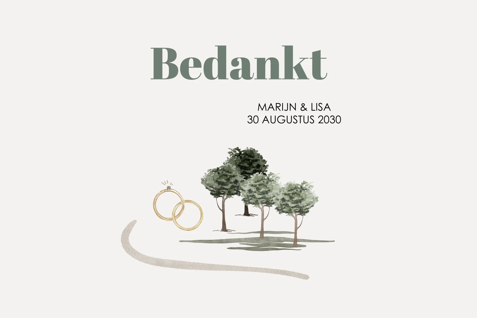 Deze trendy bedankkaart maakt deel uit van de trouwkaarten set Liza.