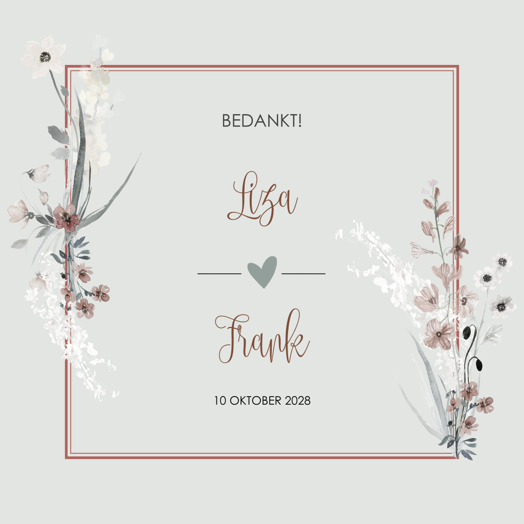 Deze bedankkaart maakt deel uit van een trouwkaartenset.