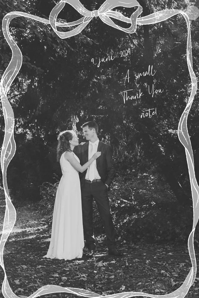 Bestel een bedankkaart voor na jullie trouwdag. Dit is een romantische bedankkaart met foto en strik. In de editor voeg je eenvoudig jullie mooiste foto toe.