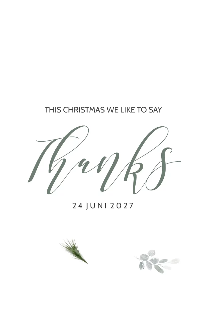 Als de geur van eucalyptus je blij maakt dan bestel je deze kerstbedankkaart om jullie familie en vrienden te bedanken voor hun bijdrage of aanwezigheid op jullie trouwdag.