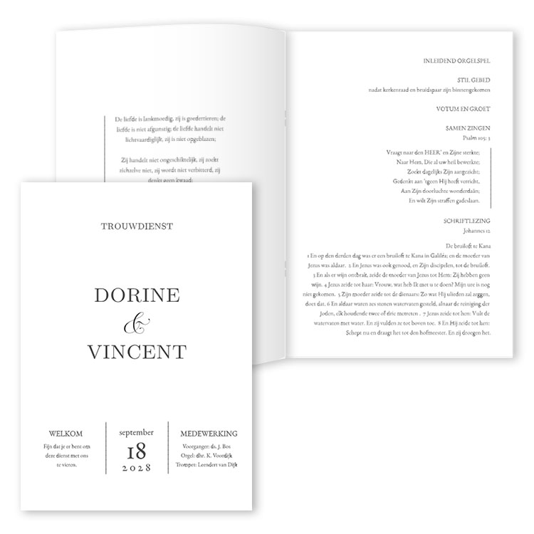 Deze stijlvolle liturgie maakt deel uit van een trouwkaartenset.