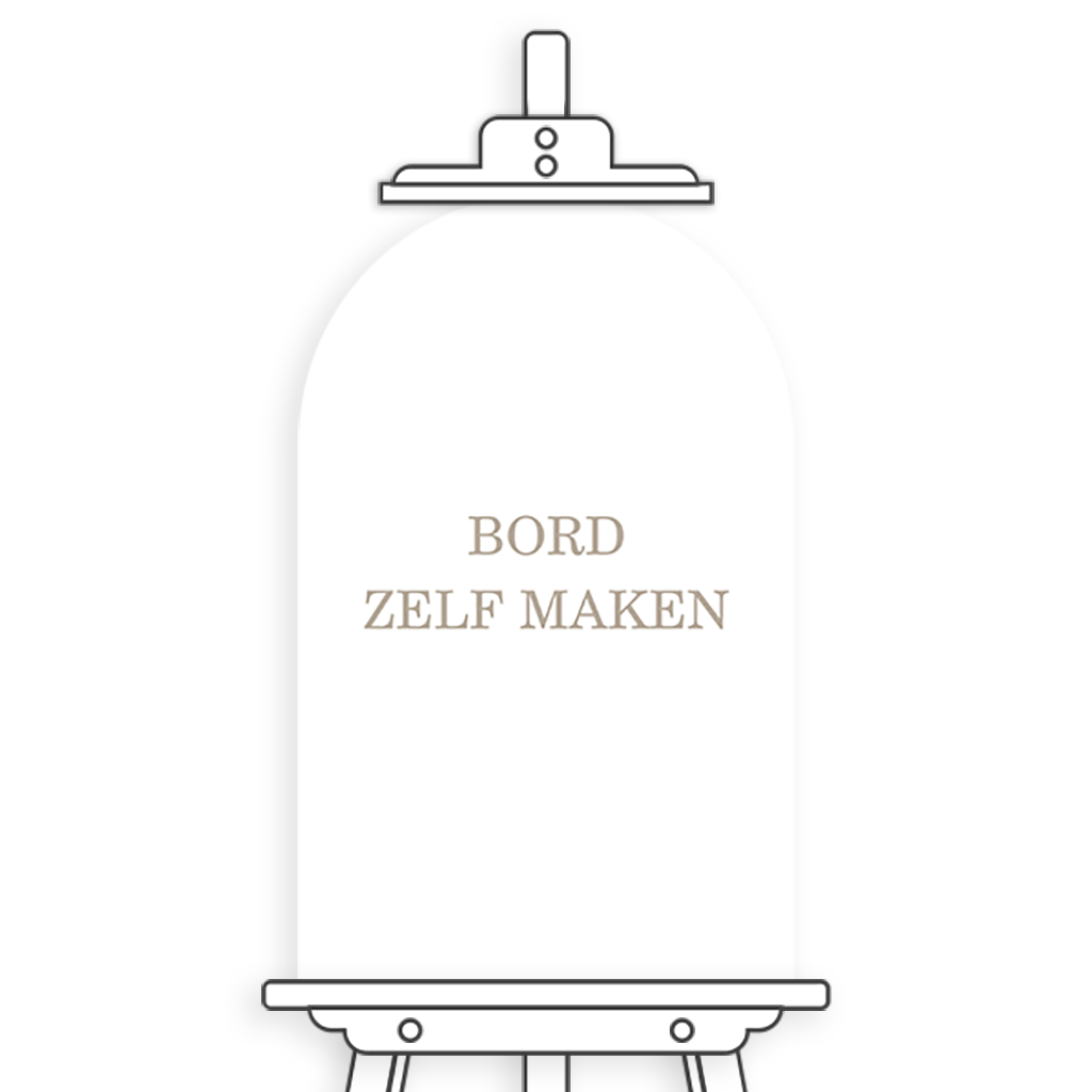 Maak een bord met boogvorm voor jullie bruiloft zelf. Dit is een kunststofbord van 50 bij 80 cm. Het bord is weerbestendig.