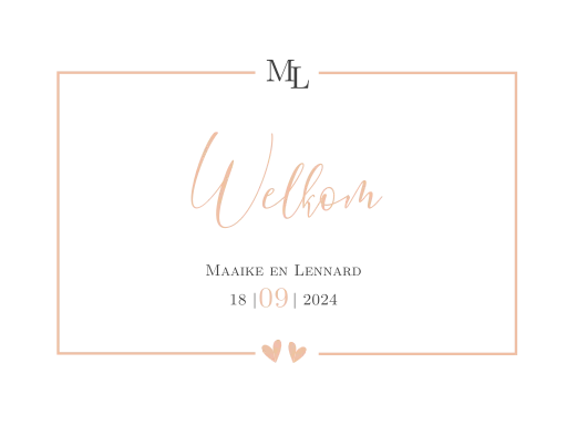 Een chic welkomstbord voor een hartelijk welkom op jullie trouwdag. Dit logo bestaat uit jullie initialen en kan gebruikt worden op jullie drukwerk.| Totaalprijs: 0 |