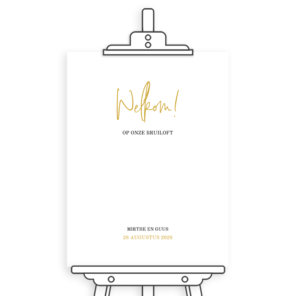 Stijlvol welkomstbord met gouden letters