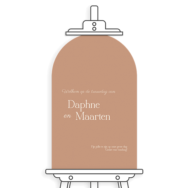 Zet dit welkomstbord bruiloft neer bij het ontvangst, zo heet je gasten op een hartelijke manier welkom op jullie trouwdag. Dit is een modern welkomstbord in boogvorm.Maak het bijpassend bij jouw kaart Personaliseer met zelfgekozen afbeeldingen en teksten Weersbestendig materiaal