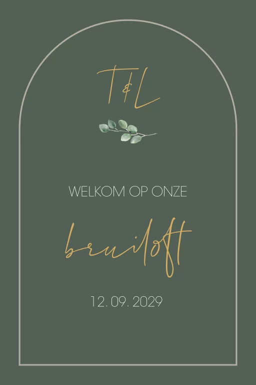Dit groene welkomstbord maakt deel uit van een trouwkaartenset.