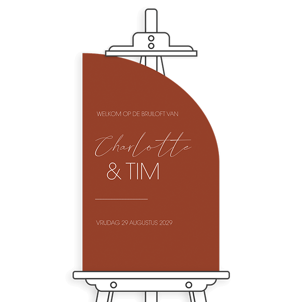 Maak een modern bruiloftsbord om gasten welkom te heten op je trouwerij. Dit bord is uniek door de halve boogvorm. Liever een andere kleur achtergrond? Je past de kleuren eenvoudig aan in de editor.