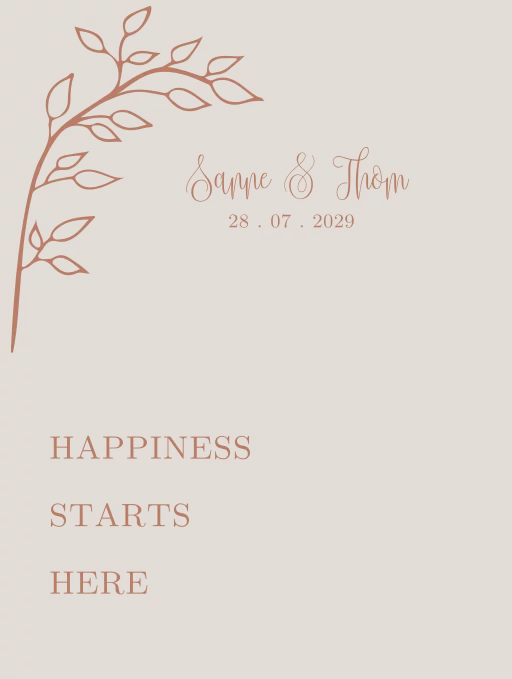 Dit welkomstbord met takje maakt deel uit van de trouwkaarten set Sanne.