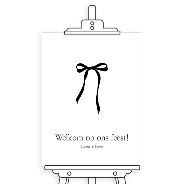 Dit welkomstbord met strik maakt deel uit van een trouwkaartenset.