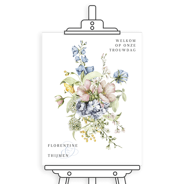 Heet de gasten hartelijk welkom met dit bord. Een vintage welkomstbord bruiloft met bloemen. Dit bord past bij een trouwkaart in dezelfde stijl.| Totaalprijs: 0 |