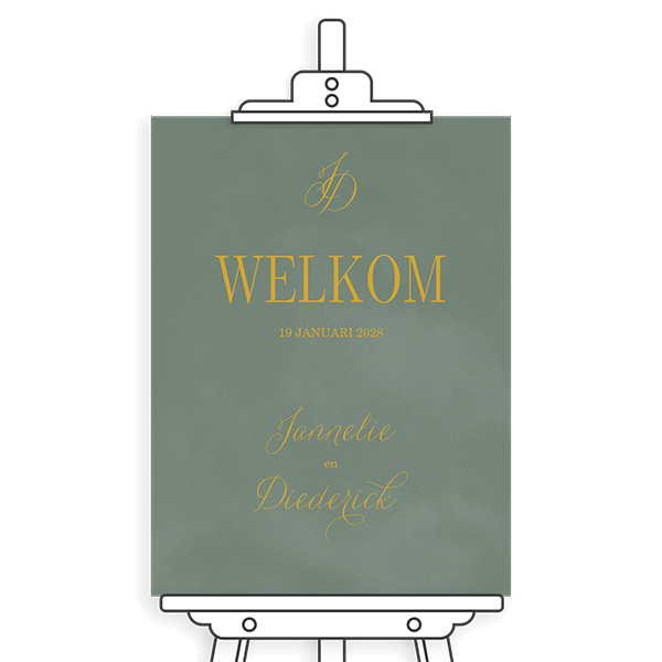 Maak een welkomstbord passend bij de trouwkaart zodat alles in één stijl voor eenheid zorgt.| Totaalprijs: 0 |
