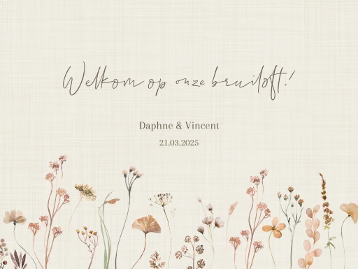 Liggend welkomstbord met bloemen