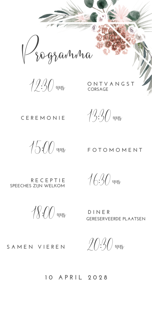 Deze programmakaart maakt deel uit van een trouwkaartenset.