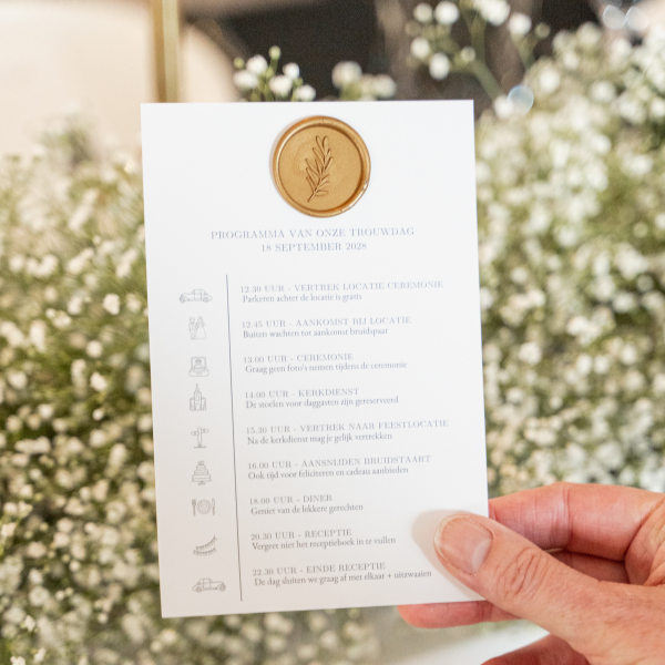 Dit programma bij trouwkaart met lakzegel maakt deel uit van een trouwkaartenset.