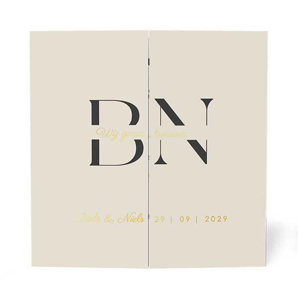 Bij het vouwen van de drieluik zal het rechtvlak links voor komen te staan en andersom. Kijk voor de zekerheid naar voorbeeld trouwkaarten om te weten hoe de lay-out werkt.