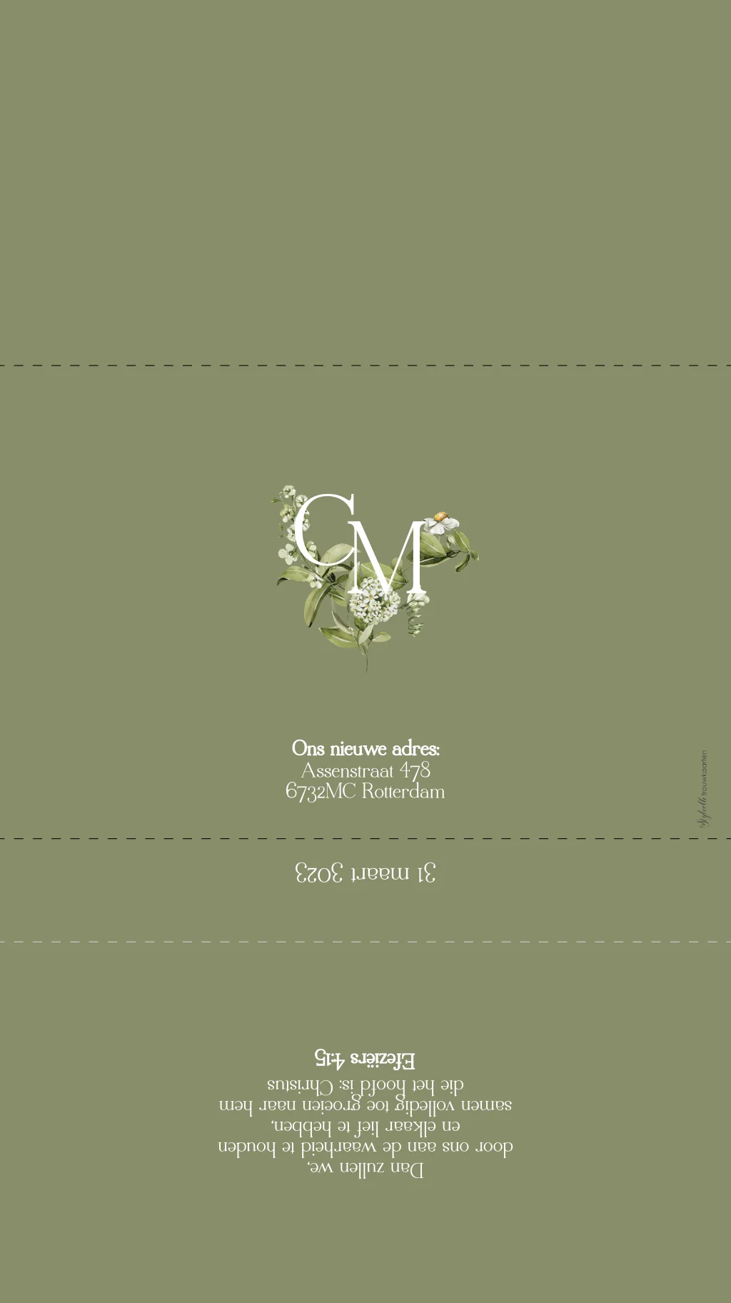 Maak een drieluik trouwkaart om te versturen naar de gasten voor jullie bruiloft. Dit is een liggende drieluik trouwkaart die je als mapje dichtvouwt. Aan de binnenkant voeg je informatie toe over jullie trouwdag. Op de achterkant voeg je jullie initialen toe, met de bloemen maakt dat een mooi logo. Je maakt deze bloemen trouwkaart dicht met een lakzegel. LET OP: De lakzegels bestel je apart bij de kaarten. Je kunt tijdens het bestellen van de trouwkaarten de lakzegels bestellen per 25 stuks. Je plakt deze thuis met de handig plakstrip op de trouwuitnodiging.