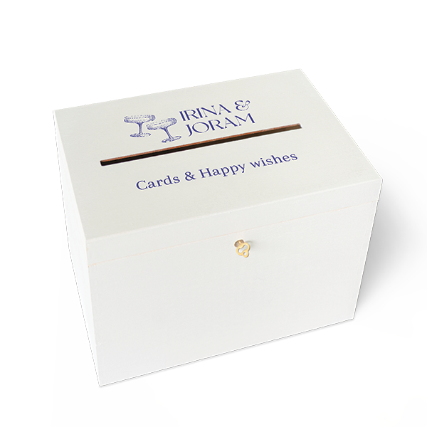 Maak een trend enveloppendoos bruiloft met champagneglazen. In deze houten doos kun je cadeaus en kaarten kwijt die jullie van gasten krijgen.| Totaalprijs: 0 |
