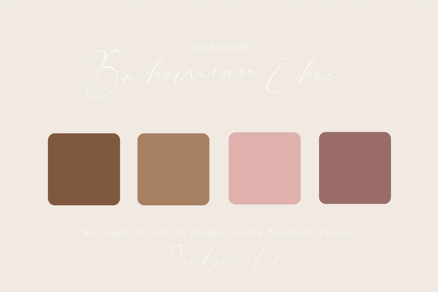 Voeg een dresscode kaartje toe aan je trouwkaart. Dit is een stijlvol kaartje in beige met goudfolie.| Totaalprijs: 0 |