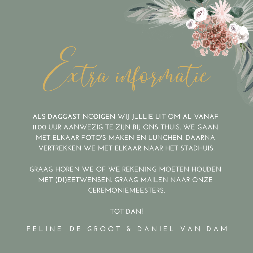 Passend bij de trouwkaart kun je dit extra kaartje bestellen met extra info.