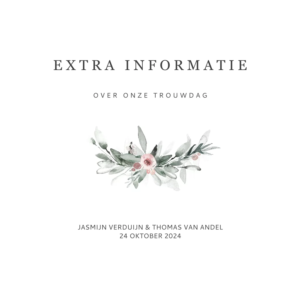 Dit extra informatie kaartje met bloemen maakt deel uit van een trouwkaartenset.