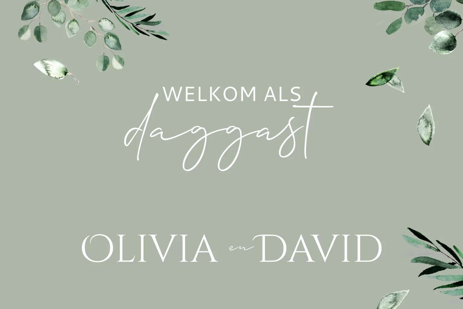 Maak bij de trouwkaart een extra kaartje voor de daggasten. Dit is een botanisch kaartje met eucalyptus blaadjes. Zo laat je weten wie er welkom is als daggast.| Totaalprijs: 0 |