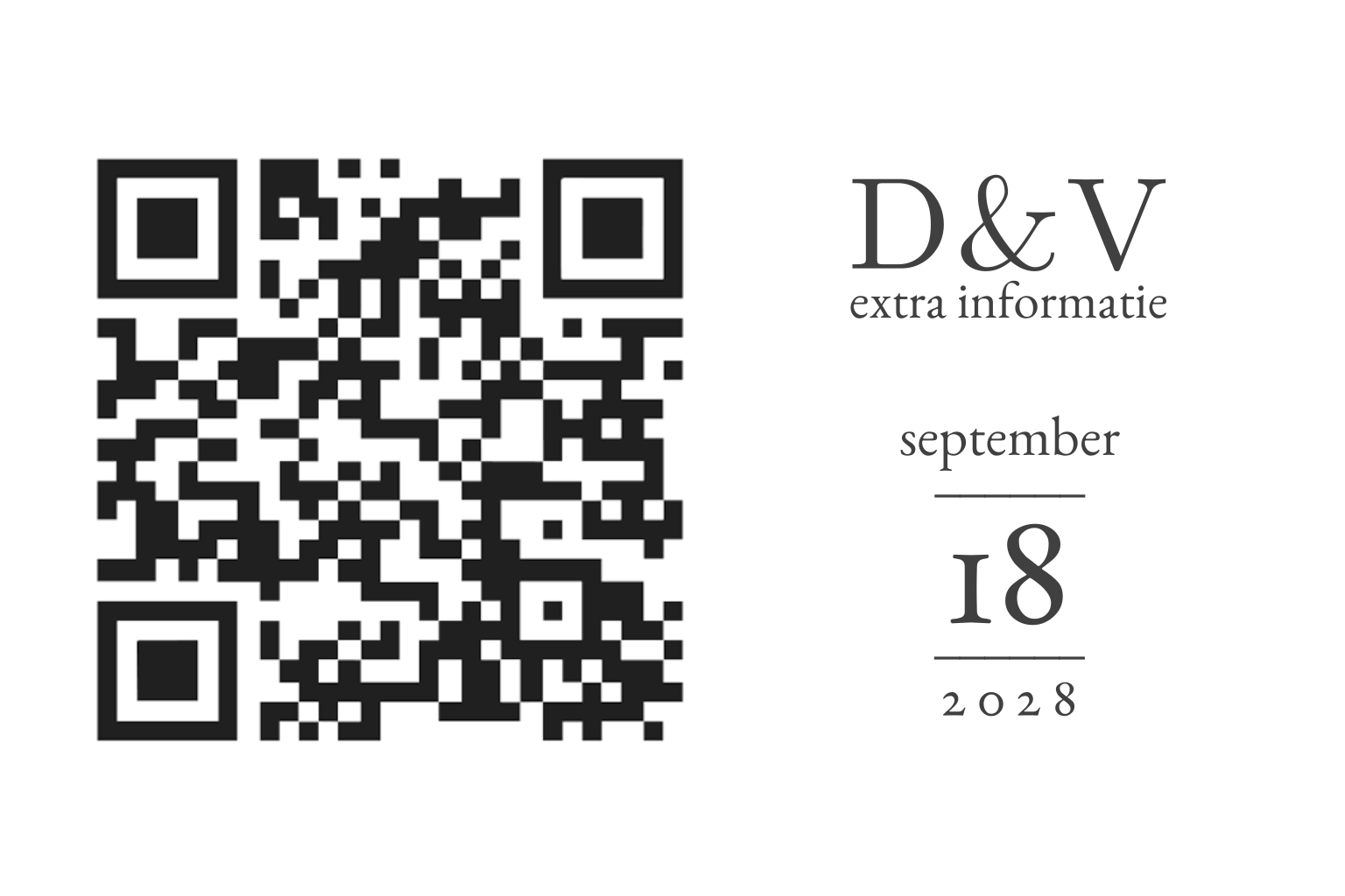 Maak een extra kaartje bij de trouwkaart. Dit is een stijlvol kaartje met een qr-code. Je kan zelf via internet een qr-code maken. Download deze en upload het in de editor in png formaat.| Totaalprijs: 0 |