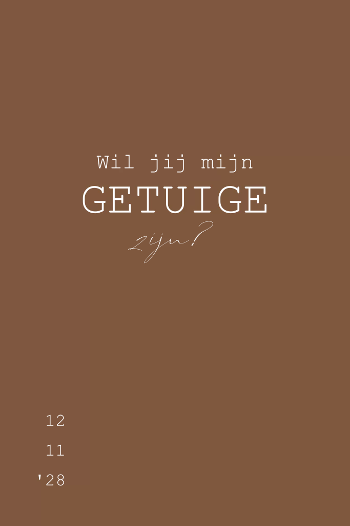 Ontwerp een stijlvol kaartje voor getuigen vragen. Dit is een getuige kaartje met ronde hoeken en goudfolie. Voeg op de achterkant een persoonlijke en lieve tekst toe.| Totaalprijs: 0 |
