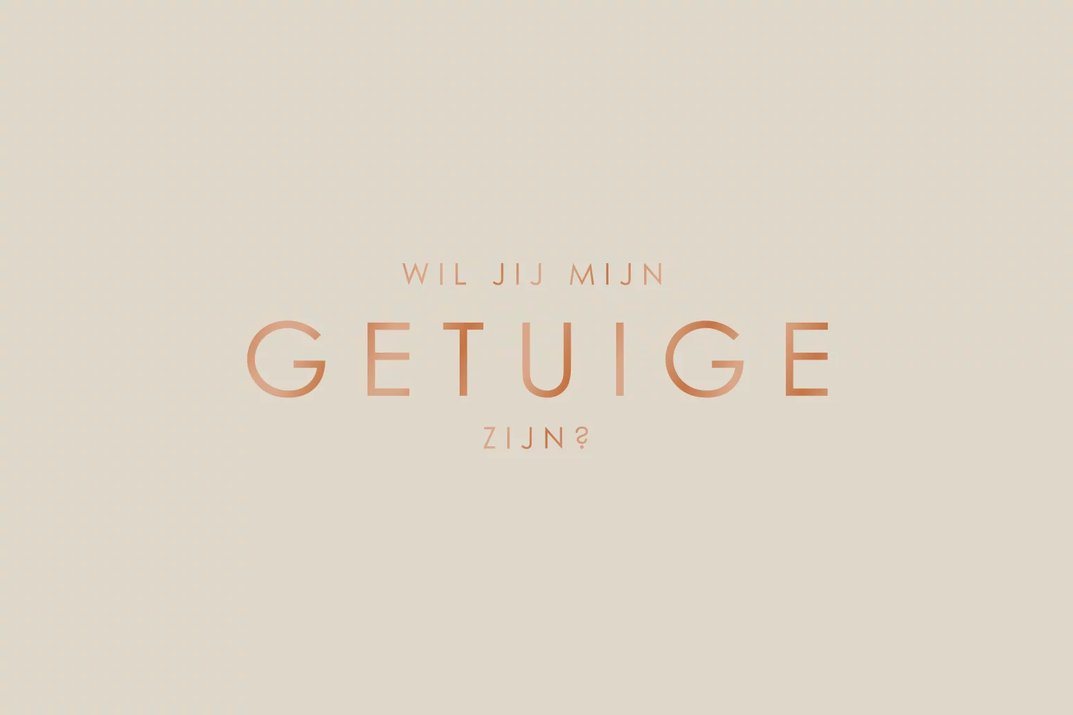 Dit is een stijlvol getuige kaartje met hoogglans. Schrijf op de achterkant een lieve tekst en geef het kaartje aan degene die jou getuige wordt.
