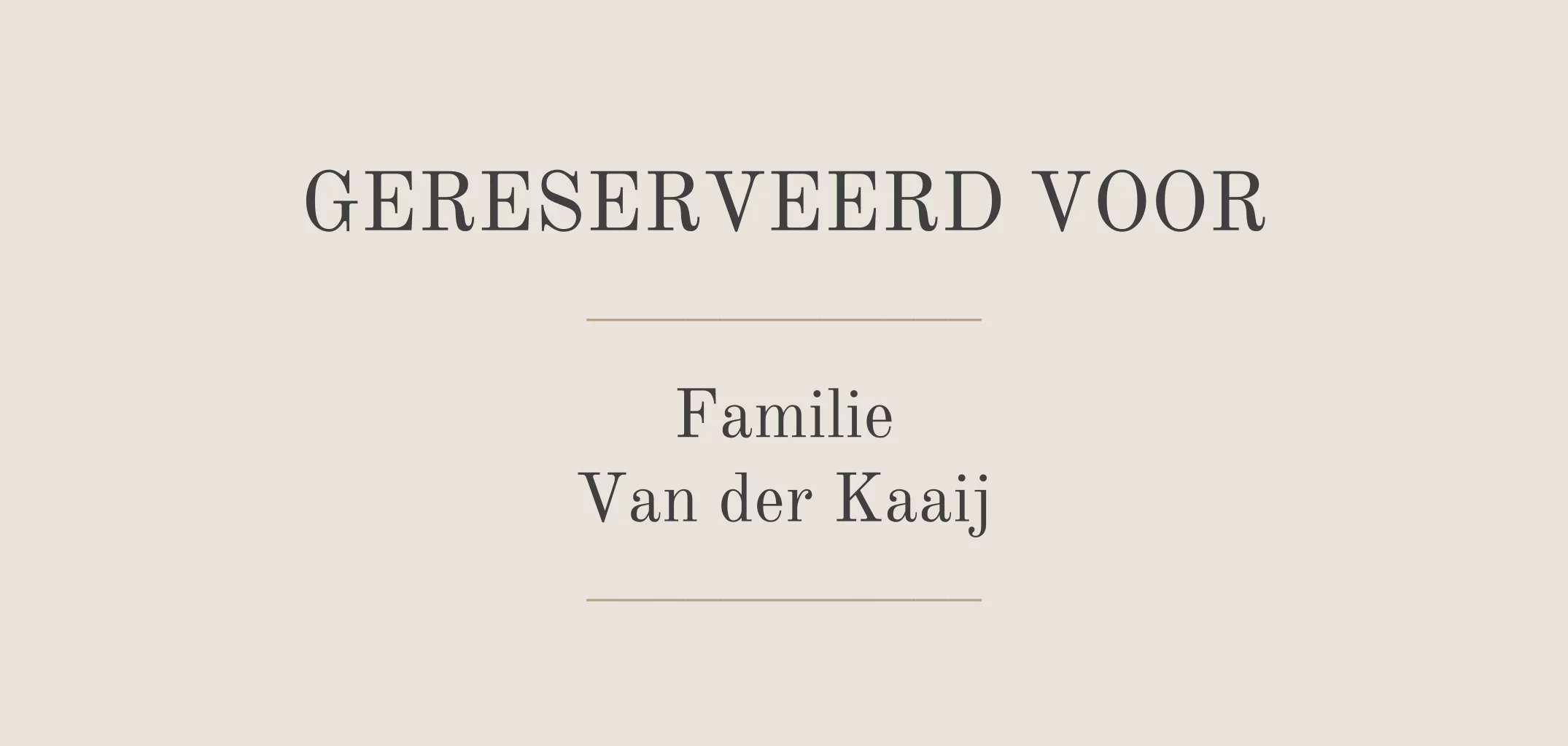 Bestel een gereserveerd kaartje om stoelen voor gasten te reserveren. Ontwerp een kaartje in dezelfde stijl als jullie trouwkaart. Dit is een stijlvol gereserveerd kaartje in het beige.| Totaalprijs: 0 |