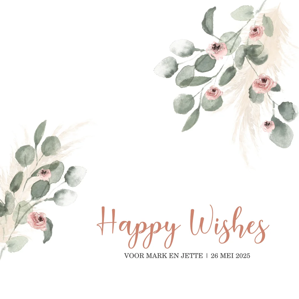 Een gastenboekkaartjes die jullie gasten kunnen invullen voor een blijvende herinnering. Maak je vragen die bij jullie passen. Dit zijn voorbeelden. We adviseren het formaat 11 bij 11 cm.