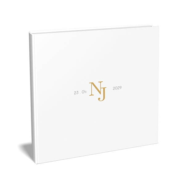 Maak een gepersonaliseerd gastenboek voor de bruiloft in een vierkant formaat. Dit is een klassiek gastenboek met jullie initialen.