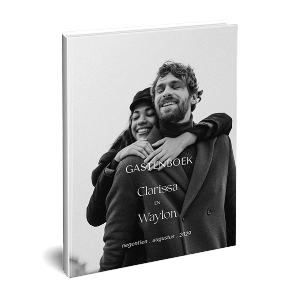 Dit gastenboek past bij de kaart van Trouwkaart met fotostrook en labeltje. Maak een gepersonaliseerd gastenboek voor de bruiloft in een staand formaat. Maak gebruik van onze uitgebreide beeldbank.