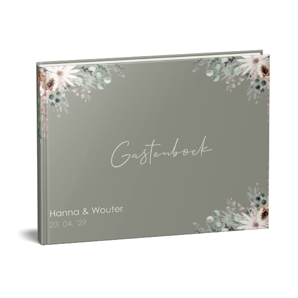 Bestel een gastenboek in de stijl van je trouwkaart. Dit is een romantisch gastenboek met bloemen.| Totaalprijs: 0 |