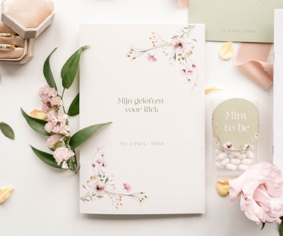 Dit romantische geloftenboekje maakt deel uit van de trouwkaarten set Malou.