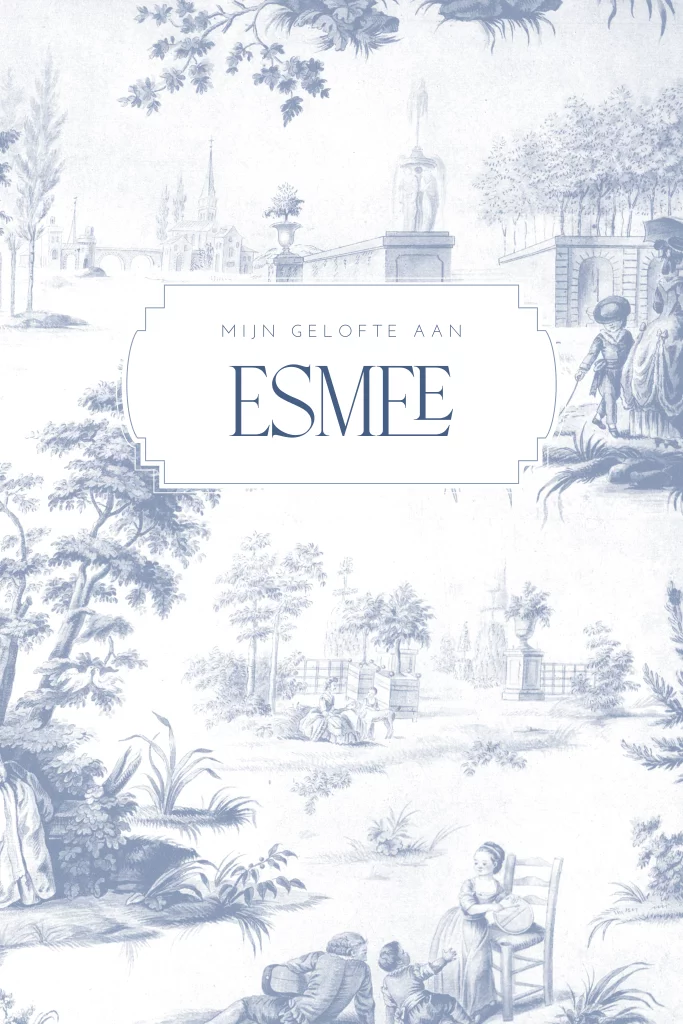 Bestel een handig gelofteboekje voor de bruiloft. Deze dubbele kaart kan je gebruiken om je geloften in te schrijven. Dit is een romantisch geloftenboekje met blauwe Toile de Jouy.