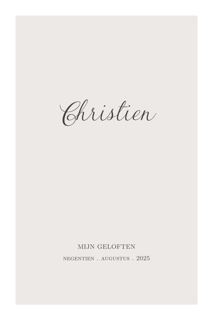 Ontwerp een stijlvolle geloftekaart met wit randje. Deze kaart gebruik je om jullie geloftes in op te schrijven. Voeg je geloftes toe in de editor, of bestel het boekje en schrijf ze zelf met de hand.| Totaalprijs: 0 |