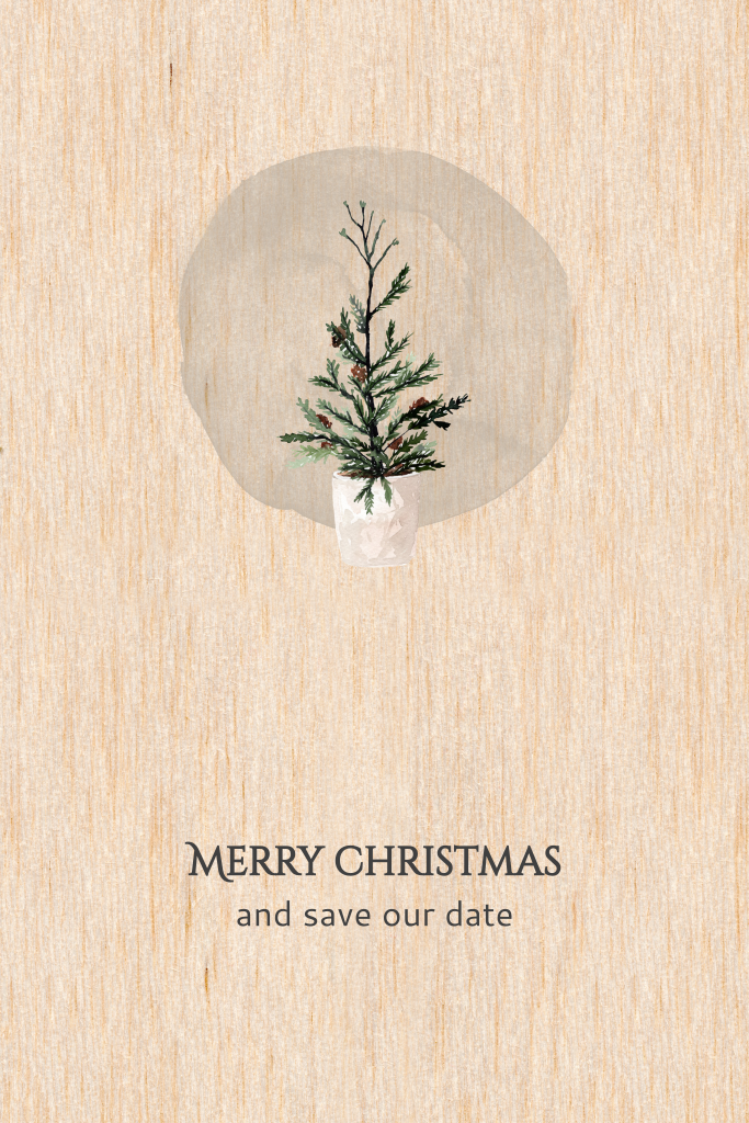 Een houten kaart die uniek is om te versturen als kerstkaart. De kaart is van echt berkenhout, stevig en licht van gewicht. Maak je eigen ontwerp in de kaartopmaker en maak jullie trouwdatum bekend.