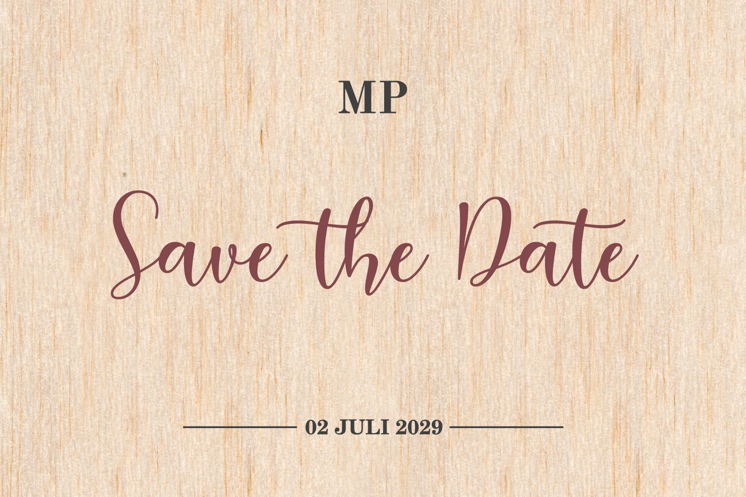 - Houten Save the Date kaartjes zijn een natuurproduct dus elke kaart is anders.