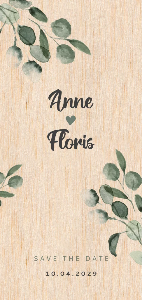 - Maak in de kaartopmaker een mooi ontwerp van deze houten Save the Date.