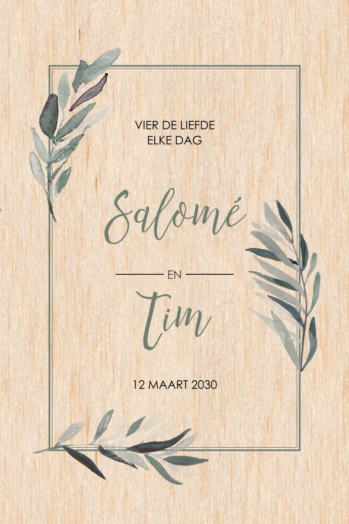 - Maak in de kaartopmaker een mooi ontwerp van deze houten trouwkaart.