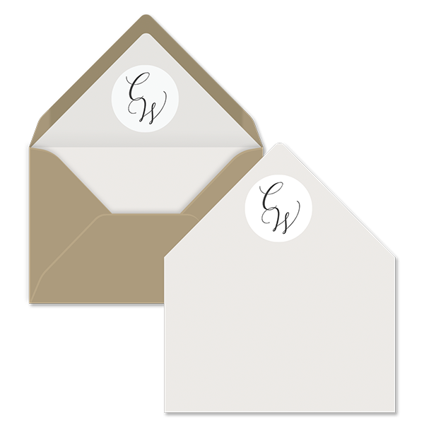 Bestel een beige inlay met julie logo. Deze inlay plak je zelf in de envelop om je trouwkaart.