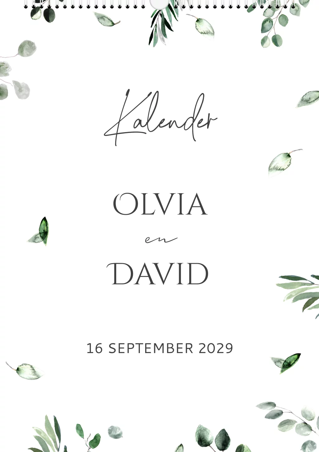 Deze botanische kalender maakt deel uit van de trouwkaarten set Olivia.