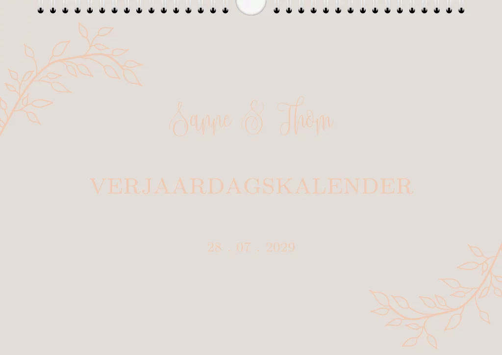 Maak een originele verjaardagskalender voor de bruiloft. Een kalender is een leuk en persoonlijk alternatief voor een gastenboek. Deze kalender past bij een trouwkaart in dezelfde stijl.