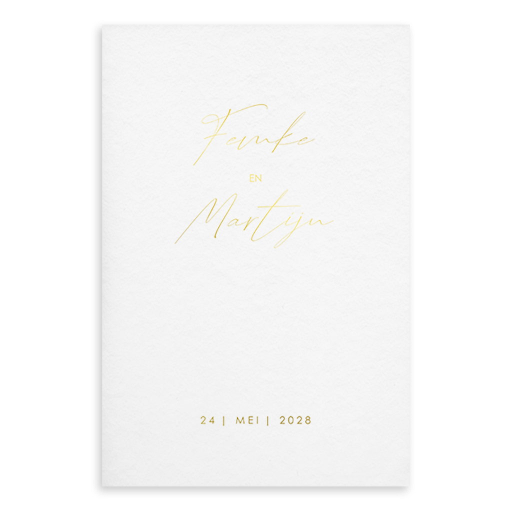 Kies voor deze doorschijnende voorkant van jullie trouwkaart. Er wordt prachtige goudfolie op gedrukt. Je kunt een losse kaart achter deze kaart van kalkpapier kiezen.