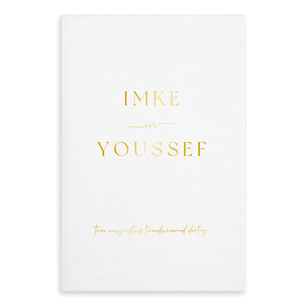 Een vintage trouwuitnodiging die gedrukt wordt op kalkpapier en met een mooie glimmende laag goudfolie. Je kunt bij deze trouwkaart een losse vintage kaart achter plaatsen of zo versturen als alle informatie op de kaart staat.| Totaalprijs: 0 |