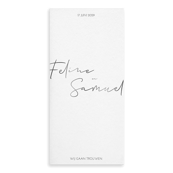 Deze minimalistische trouwkaart maakt deel uit van een trouwkaartenset.