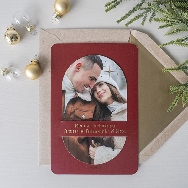 Kerst Save the Date insteekkaart met foto en goudfolie