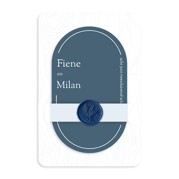 Ontwerp een trend trouwkaart met meerdere kaartjes en een lakzegel. Het ovale kaartje schuifje achter in de grotere kaart. De lakzegel bestel je los bij de kaart, je vindt ze bij info en service.