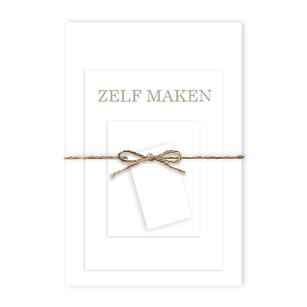 Ontwerp een trouwkaart met meerdere kaartjes en een labeltje. Stapel alle kaartjes op elkaar en strik deze vast met een touwtje (of lintje) en het labeltje met gaatje. Een unieke trouwkaart die niemand anders heeft! In de editor maak je zelf een persoonlijke trouwuitnodiging in jouw stijl.