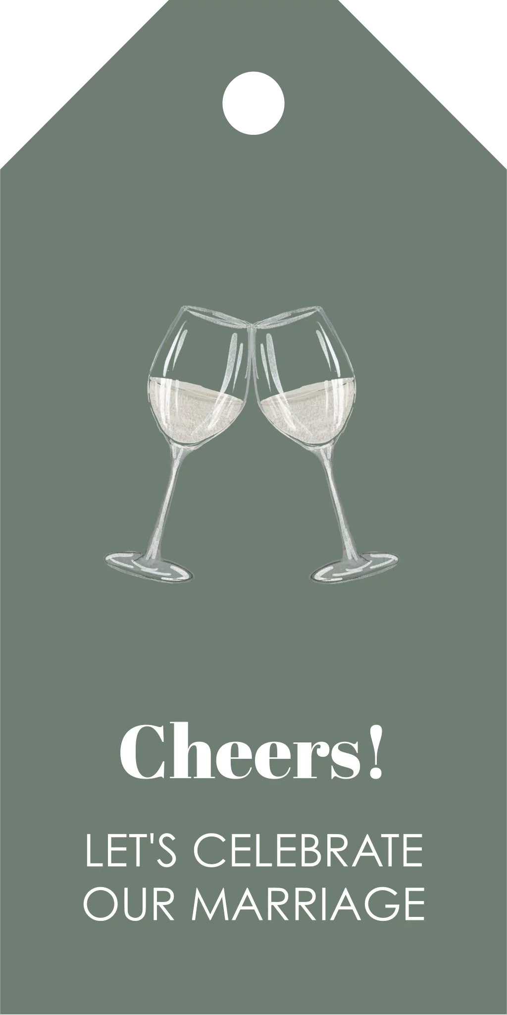 Ontwerp een labeltje met icoontje voor aan een wijnfles. Deze kan je bijvoorbeeld meegeven aan het einde van de bruiloft als bedankje. Je ontvangt 16 labeltjes van dit exemplaar.* Ontwerp in stijl van de kaart